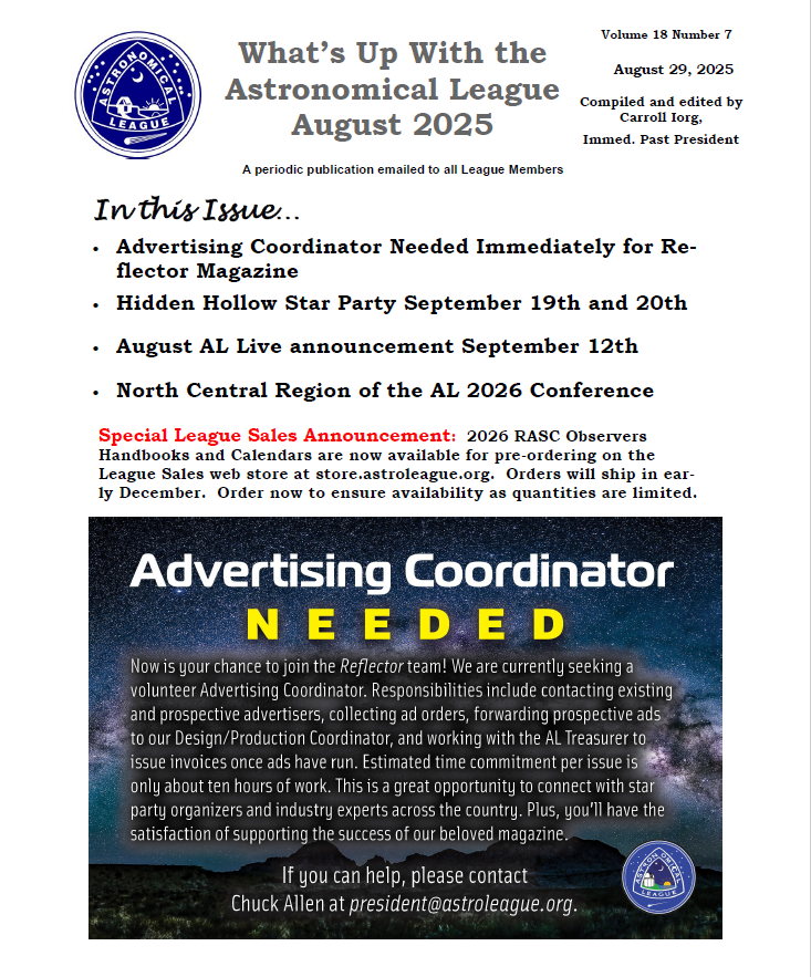 RASC Observers Handbook and 2026 Astronomy Calendar are now available in the Astronomical League Store. Get them while they last!